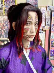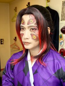 髪型はお客さん持参のウィッグを自分で被ってます。